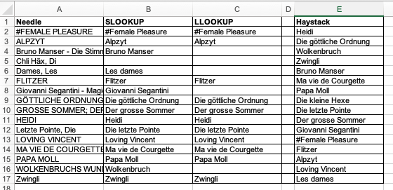 LLOOKUP(needle, haystack, result, optional threshold = 0.75, optional partialstring = true, optional simplestring = true)